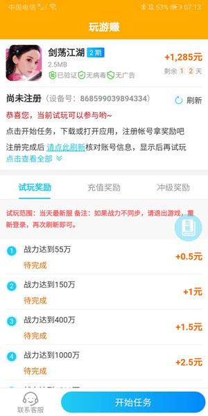 下载应用 玩游赚 分类: 安卓赚钱 大小: 2.76 MB 系统: 安卓 发布: 2020-03-14 10:05:43 浏览: 作者: 标签: APP截图 应用介绍 玩游赚是一个以玩手机游戏就能赚零花钱的app,首次1元就能提现,后续5元起提现,超低提现门槛。玩的越多玩的越久,等级越高就赚的越多,记住最好不要充钱玩。对于爱玩游戏的朋友来说这个app再好不过,免费玩游戏还能兼而赚点零花钱,一举两得,仅支持安卓手机下载。 最新应用 趣头条 泡泡头条 麒麟网 抖音极速版 彩蛋视频 贝壳转 蚂蚁看点 闪电盒子